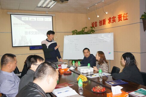 韩国大宝涂料公司是韩国具有丰富涂料研发生产经验及自主研发创新能力的龙头企业,其所研发的外墙保温节能涂材、液态质感涂料技术领先国际同行。早在两年前,大宝涂料公司与中山市南天涂料有限公司达成技术联盟关系,制订定期互访交流计划,为中山市南天涂料有限公司的产品更新换代协助提速。本次技术交流研讨会的主题是“新型产品技术革新及现代化生产管理之道”,探讨南天公司现有的技术水平和生产模式上如何创新,如何建立过硬的质量技术体系,打造优于国内同行企业与国际品质接轨的优质产品,双方畅所欲言,结合南天公司未来的战略目标及发展方向,大宝公司提供了一系列珍贵中肯的建议与改革方案,并为双方将要达成的合作奠定了坚实的基础。